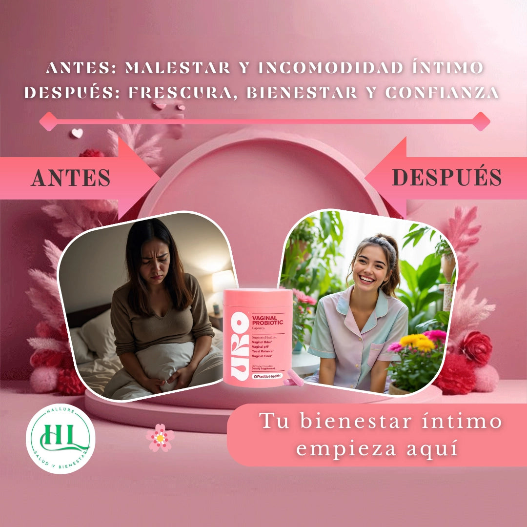 Es un suplemento natural diseñado para prevenir infecciones urinarias, equilibrar la flora íntima y eliminar el mal olor vaginal desde la raíz. Gracias a su fórmula con probióticos específicos, ayuda a mantener un pH íntimo saludable, protege contra bacterias dañinas y mejora tu bienestar íntimo general.